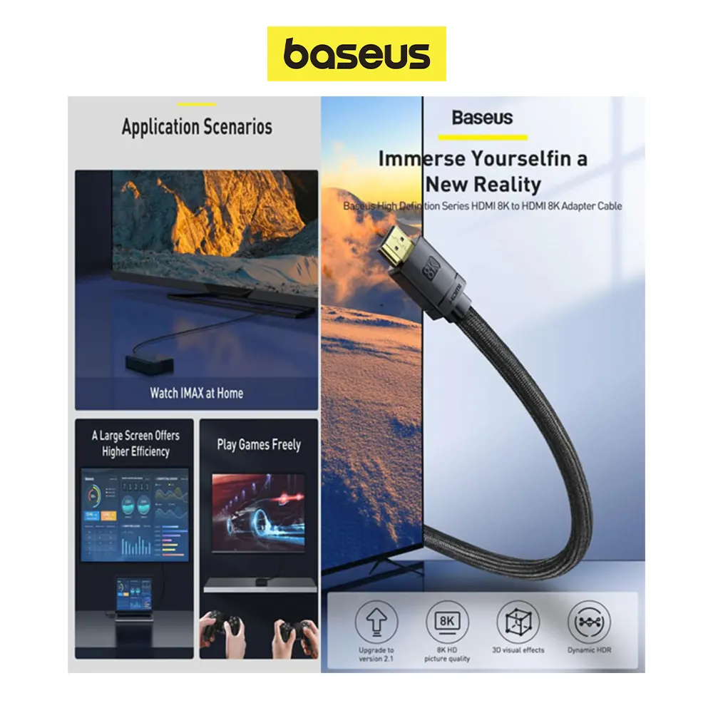 ✅ Baseus-Cable Digital 8K Xiaomi Mi Box, 8K/60Hz, 4K/120Hz, 48gbps, para PS5, PS4, Portátiles, Divisor de Monitor ✅ Soporte de vídeo 3D ✅ Soporta 8K, resolución de 7680×4320 ✅ Soporta 8K @ 60Hz, 4K @ 120Hz, 2K @ 144Hz ✅ HDR estático (datos estáticos HDR) ✅ HDR dinámico (datos dinámicos HDR) ✅ Frecuencia de actualización Variable (VRR) ✅ Cambio rápido de medios (QMS) ✅ Modo automático de baja latencia (ALLM)