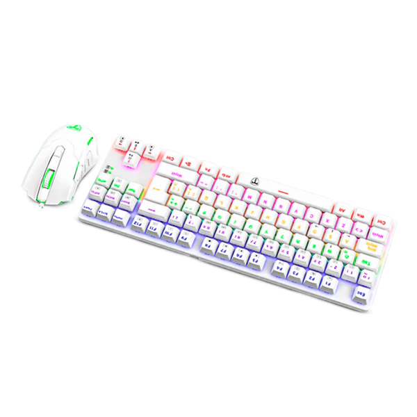 El Advance Force es un conjunto diseñado para la victoria directa. Consta de un teclado mecánico compacto pero sólido y un ratón ágil y preciso, que se combinan perfectamente. El teclado, sin teclado numérico, amplía el espacio para el movimiento del ratón, ideal para juegos FPS o MOBA. Su tamaño reducido lo hace portátil, con un cable USB desmontable para facilitar su transporte y evitar daños. Los interruptores encapsulados ofrecen una durabilidad de aproximadamente 50 millones de clics, resistiendo polvo y salpicaduras. Las teclas de doble inyección mantienen su calidad sin borrarse ni despintarse, con retroiluminación rainbow y efectos dinámicos personalizables. El ratón, con 6 botones, un sensor excelente y cambio rápido de DPI, es un avance seguro, equipado con switches de alta calidad y un cable mallado de 1,8 m para una libertad de movimiento óptima. Y, por supuesto, la retroiluminación RGB indispensable para los amantes del gaming.