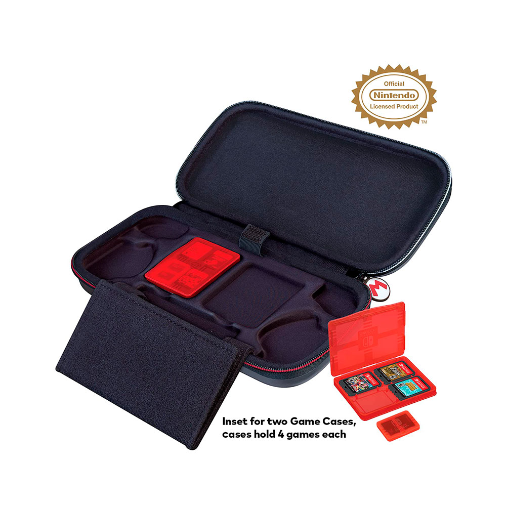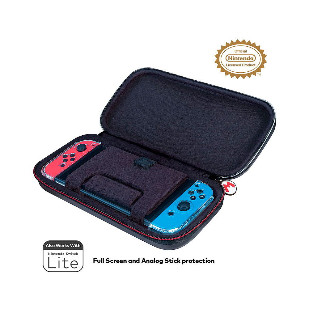 Diseñada específicamente para adaptarse a la Nintendo Switch, esta funda ofrece una protección óptima gracias a su carcasa rígida, asegurando que tu consola, controladores y tarjetas de juego estén a salvo de daños, golpes y arañazos durante el uso diario. Con un diseño profesional, incluye un amplio espacio interior para almacenar tus juegos y un práctico bolsillo de malla para mantener tus accesorios organizados. Además, su cremallera versátil garantiza la seguridad de tu Switch y todos sus accesorios en todo momento.