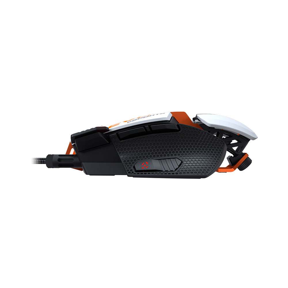 Ratón óptico para juegos de 16000 DPI La evolución final del depredador alfa del mundo del ratón para juegos. Tomando toda la personalización, ergonomía y funcionalidad extendida que hizo de 700M un ganador, 700M EVO eSPORTS trae un nuevo sensor óptico robusto (Pixart PMW3389), más mejoras ergonómicas y una nueva apariencia para dominar los escenarios en línea. Estructura de Aluminio El aluminio sirve como estructura esquelética de 700M EVO eSPORTS, proporcionándole una combinación única de estructura liviana y durabilidad de metal que lo distingue de los ratones comunes. Está formado por una sola pieza de aluminio y se pliega en el chasis que crea un mouse para juegos más ligero, rígido y robusto. El reposamanos perfecto El diseño único de 700M EVO eSPORTS le permite ajustar no solo la altura del reposamanos, sino también su posición (adelante / atrás) sin usar ninguna herramienta. Pero hay más: para garantizar un ajuste perfecto con su estilo de agarre, hemos incluido un segundo reposamanos más pequeño en el paquete. ¿Qué más podría pedir un jugador? 8 Botones totalmente configurables Los ocho botones totalmente configurables de 700M EVO eSPORTS permiten al usuario, utilizando los tres perfiles integrados, acceder a hasta 27 funciones (macros, accesos directos y más) y 12 niveles de DPI con una sola mano, ¡lo que convierte a 700M en una excelente elección para cualquier juego!