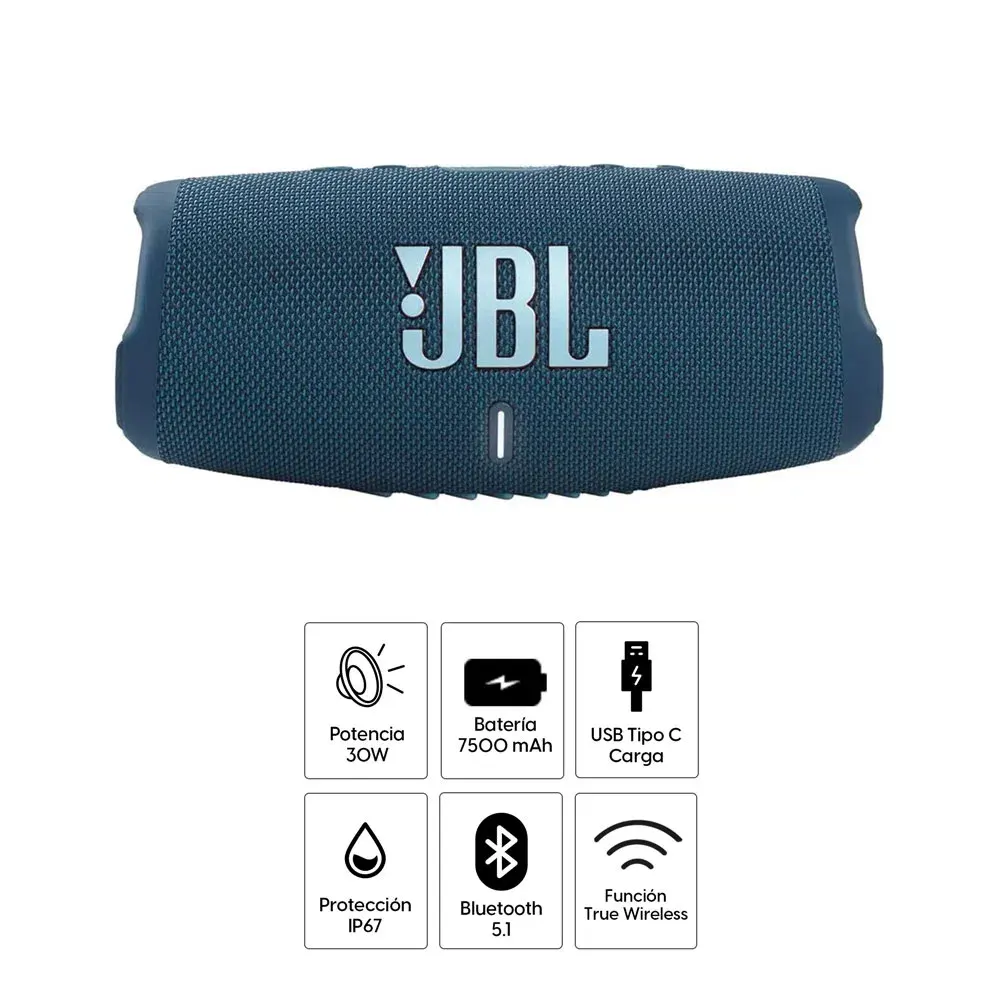 Parlante Bluetooth JBL Charge 5 30w, IP67, máx. 20 horas, 7500 mAh, Función TWS, USB-C, azul