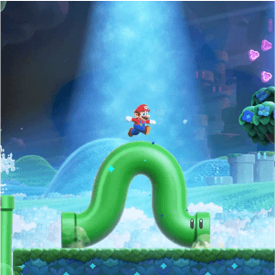 El juego destaca por su expresivo estilo de animación, lleno de personalidad en cada salto, y la introducción de transformaciones icónicas como Mario Elefante.